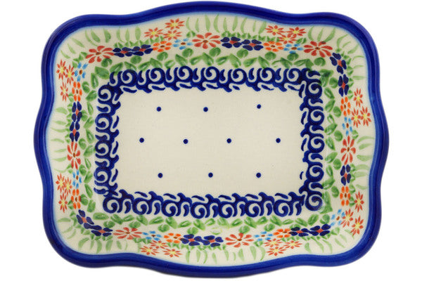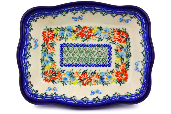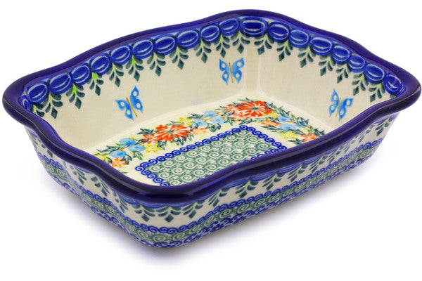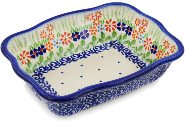 Pottery 8" Rectangular Baker Ring Of Flowers