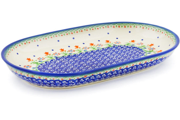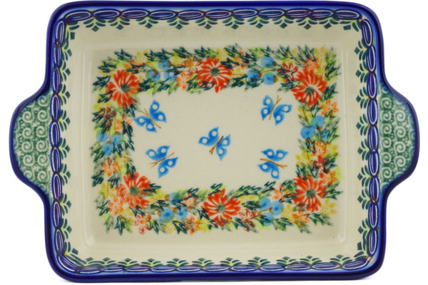 Pottery 9" Rectangular Baker with Handles Ring Of Flowers