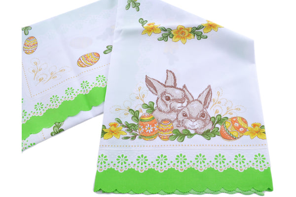 Textile Square Tablecloth 34 inches Green Easter Bunnies